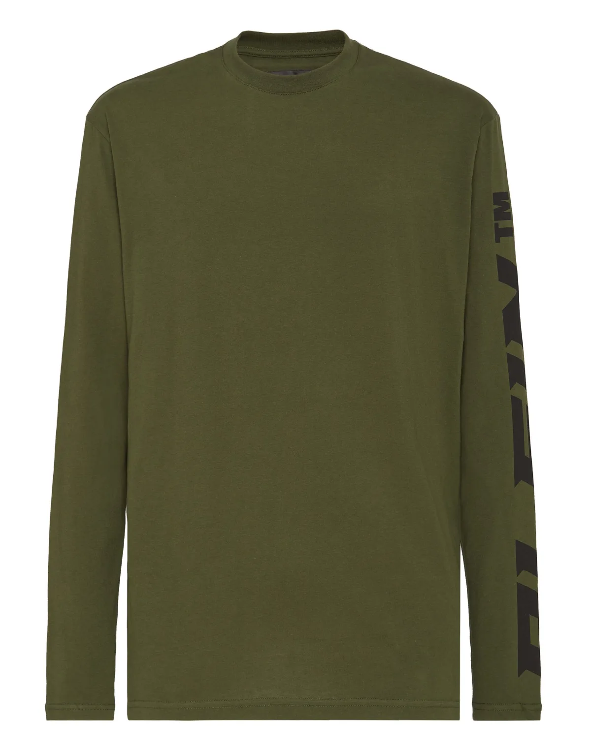 Katoenen jersey T-shirt met lange mouwen met Plein opdruk op de mouw. De saffiaanleren PP Hexagon is op het juk genaaid. Geribbelde halslijn. Zomen gestikt met twee naalden.