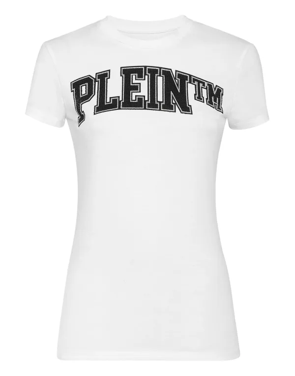 Verfraaid Kijk hoe dit katoenen jersey crewneck T-shirt wordt opgeschud. Het kledingstuk is voorzien van het iconische merk en strasapplicaties. Een saffiaanleren patch met de PP Hexagon is op het juk genaaid. De zomen zijn gestikt met twee naalden.