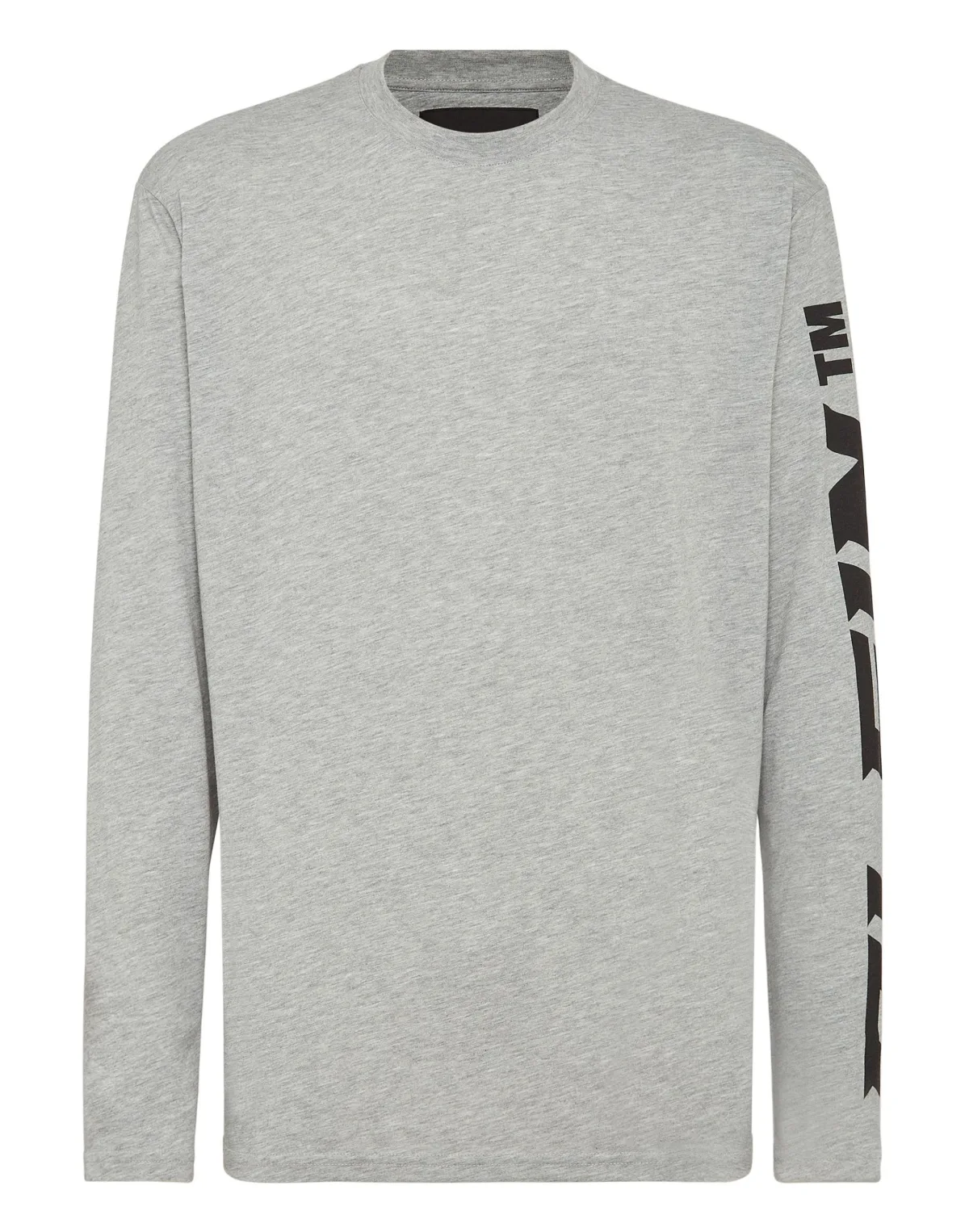 Katoenen jersey T-shirt met lange mouwen met Plein opdruk op de mouw. De saffiaanleren PP Hexagon is op het juk genaaid. Geribbelde halslijn. Zomen gestikt met twee naalden.