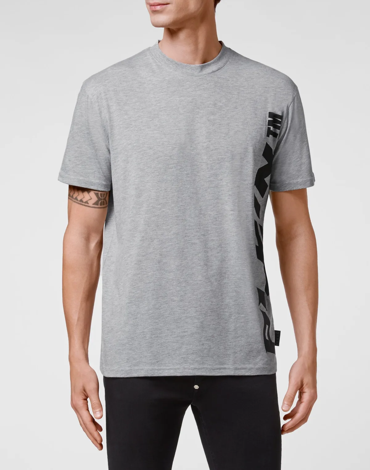 Katoenen T-shirt met de iconische letters. Een saffiaanleren patch met de PP Hexagon op het juk genaaid. Gestikt met twee naalden.