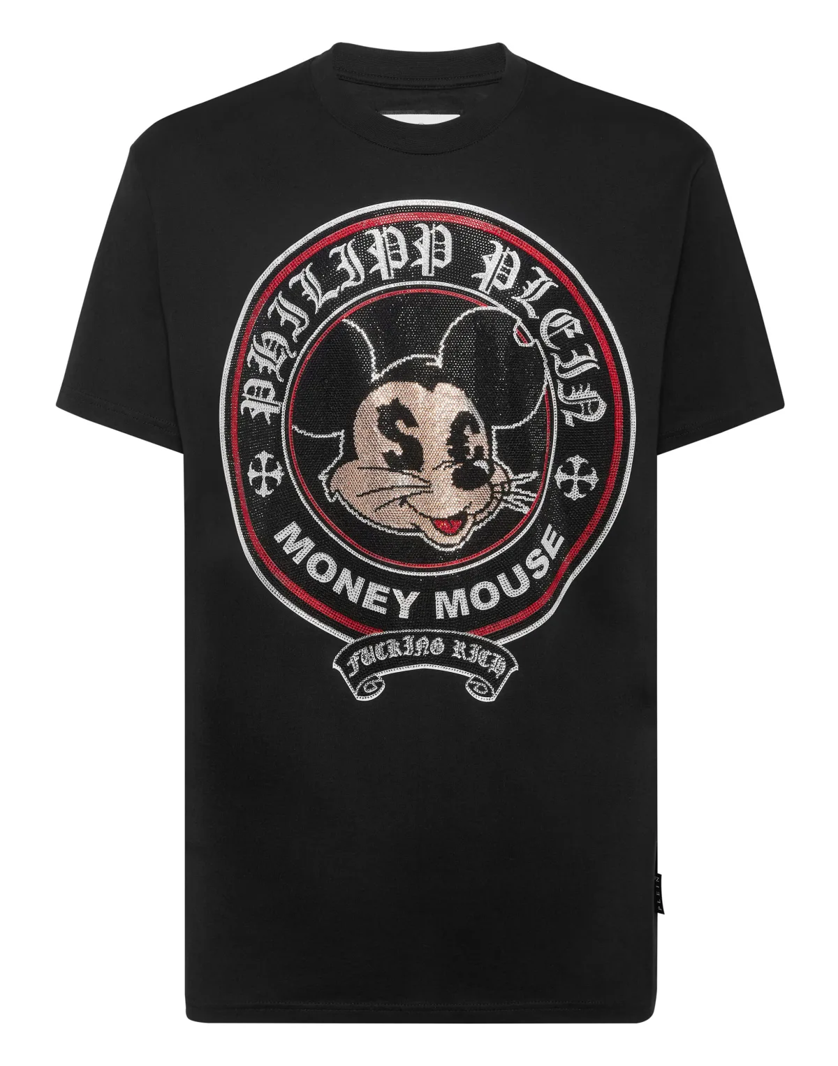 Verfraaid A plain T-shirt can become a must-have garment. Look at the details. Cotton jersey Rhinestoned Pattern print on the front Logoed patch sewn on the yoke Rib knit neckline Two needle stitching