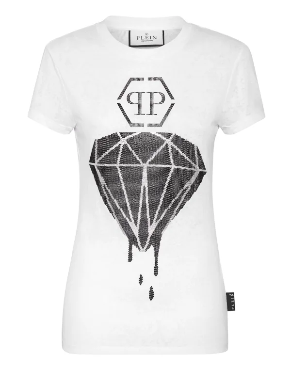 Innovatie en luxe zijn de belangrijkste elementen van dit T-shirt. Kijk naar de details. Katoenen tricot met devoré pythonmotief Bejeweled PP Hexagon op een saffiaan lederen patch genaaid op het juk Ribgebreide hals Twee naaldstiksels