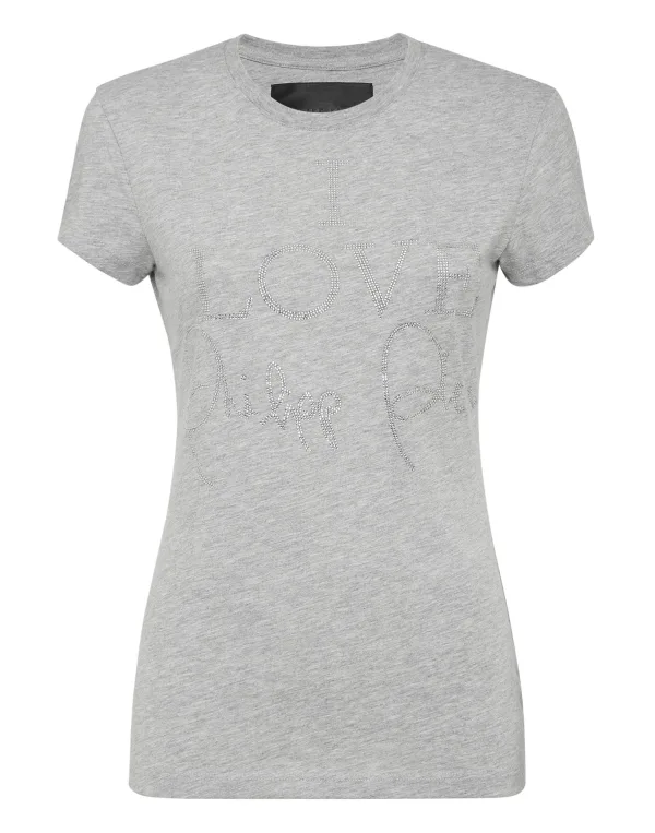 Katoenen T-shirt van jersey. De iconische Plein-handtekening van strassteentjes siert het item. Een saffiaanleren patch met de PP Hexagon op het juk genaaid. Zomen gestikt met twee naalden.