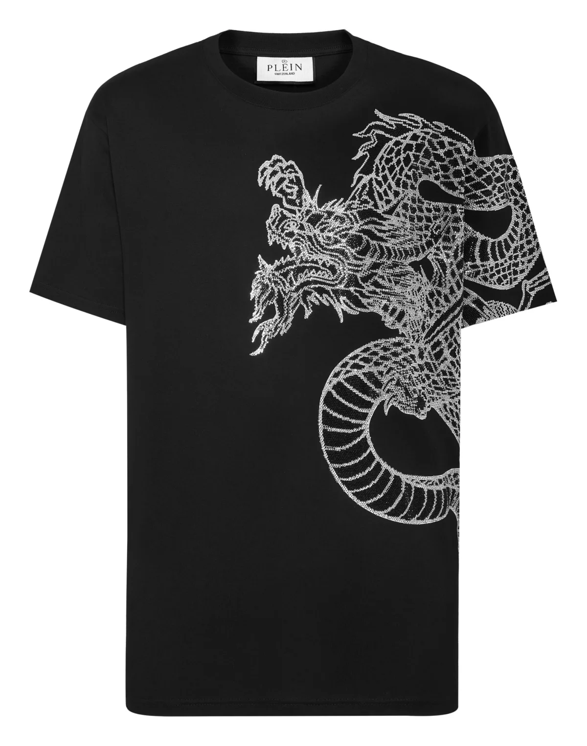 Verfraaid Voeg een vleugje uniciteit toe aan je outfits met dit exclusieve katoenen T-shirt. Bekijk de details. Katoenen jersey Drakenpatroonprint met strass-steentjes op de voorkant Merkopdruk met strass-steentjes op het juk PP Hexagon Logo op een saffiaanleren patch is op het juk genaaid Ribgebreide hals Twee naaldstiksels