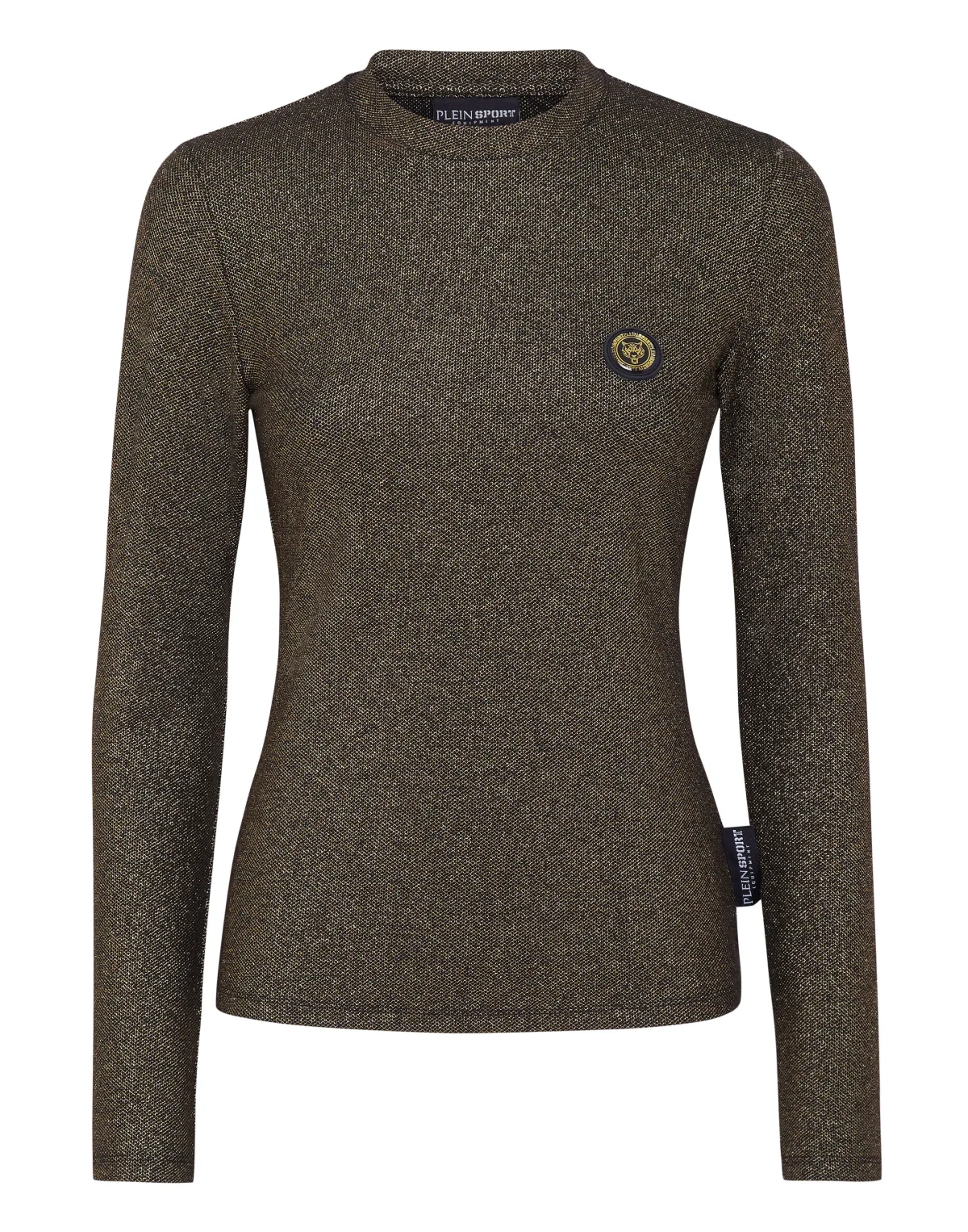 Dit t-shirt met lange mouwen en ronde hals verheft casual essentials met een verfijnd vleugje glans en een slank silhouet. Een veelzijdig stuk dat moeiteloos overgaat van dag naar avond styling. Slim fit design zorgt voor een moderne, vrouwelijke vorm Metallic vezelmengsel voegt subtiele helderheid toe Ronde hals houdt de look tijdloos en veelzijdig subtiel logo-detail verbetert de identiteit van de handtekening Perfect voor gelaagdheid onder jassen of gestyled solo voor impact