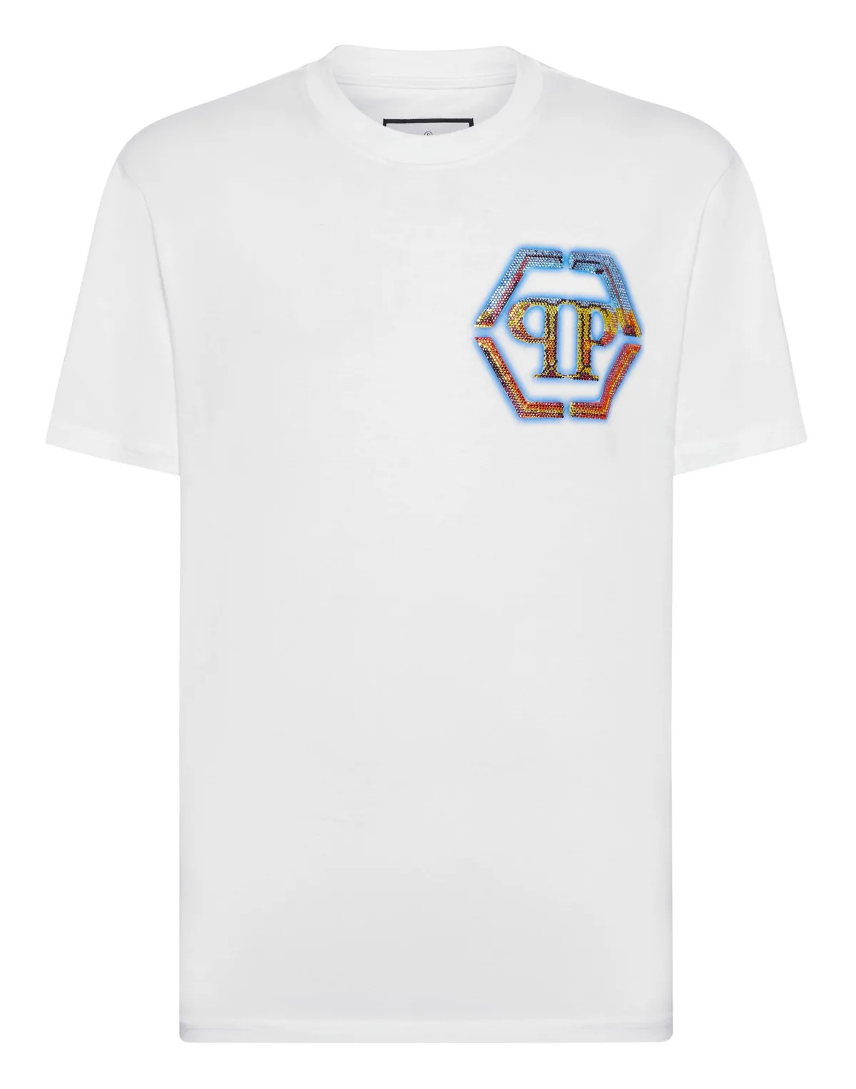 Add a dash of uniqueness to your outfits with this exclusive cotton T-shirt. Look at the details. Cotton jersey Bejewelled PP Hexagon printed at left chest PP Hexagon on a saffian leather patch is sewn on the yoke Rib knit neckline Two needle stitching