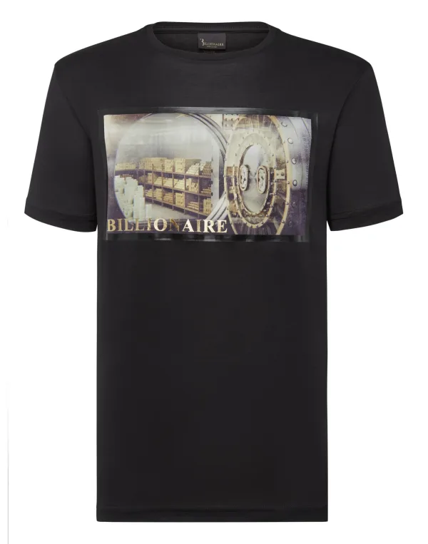 De fotoprint van een bankkluis is het belangrijkste kenmerk van dit katoenen T-shirt van jersey. Het merkembleem is gedrukt op het juk. Ribgebreide halslijn. Onderaan heeft het shirt twee zijsplitten en een tweenaalds stiksel.
