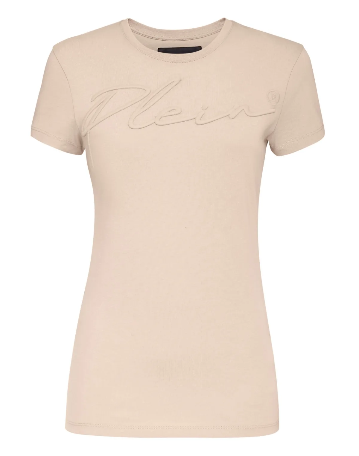 Katoenen T-shirt van jersey met de geborduurde Plein Signature op de voorkant. De saffiaanleren PP Hexagon patch is op het juk genaaid. Zomen gestikt met twee naalden.