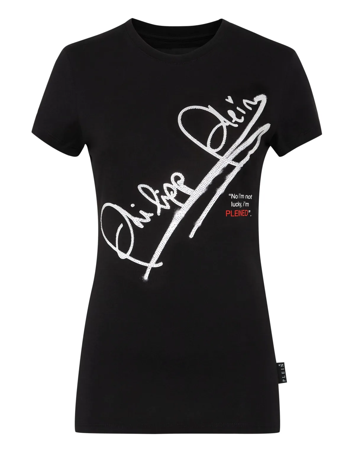 De iconografie van Philipp Plein is te herkennen aan de belettering, die elk nieuw seizoen een andere versie heeft. Op dit T-shirt van stretchkatoenjersey is het aan de voorkant bedrukt met kristallen. Zeshoekig logo op passtuk. Geribbelde halslijn. Zomen gestikt met twee naalden.