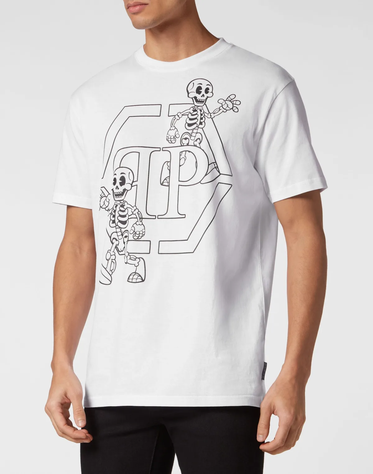 Voeg een vleugje uniciteit toe aan je outfits met dit exclusieve katoenen T-shirt. Bekijk de details. Katoenen jersey Skelet- en zeshoekige logoprint op de voorkant PP Zeshoek op saffiaanleren patch is op het juk genaaid Ribgebreide hals Twee naaldstiksels