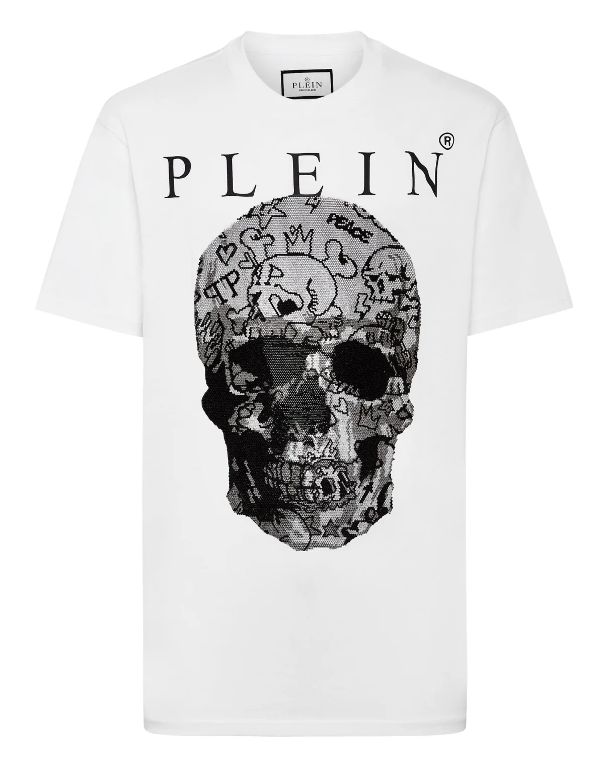 Verfraaid Ontdek de originaliteit van dit katoenen T-shirt met alle iconische elementen van het merk. Katoenen jersey Een ongewone, met juwelen versierde versie van de schedel is op de voorkant gedrukt PP Hexagon op een saffiaanleren patch is op het juk genaaid Ribgebreide hals Twee naaldstiksels Pasvorm: Over