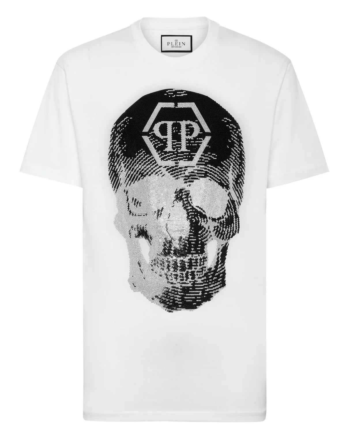 Verfraaid Ontdek de originaliteit van dit katoenen T-shirt met alle iconische elementen van het merk. Katoenen jersey De iconische bejewelled Skull-print op de voorkant PP Hexagon op een saffiaanleren patch is genaaid op het juk Ribgebreide hals Stiksels met twee naalden