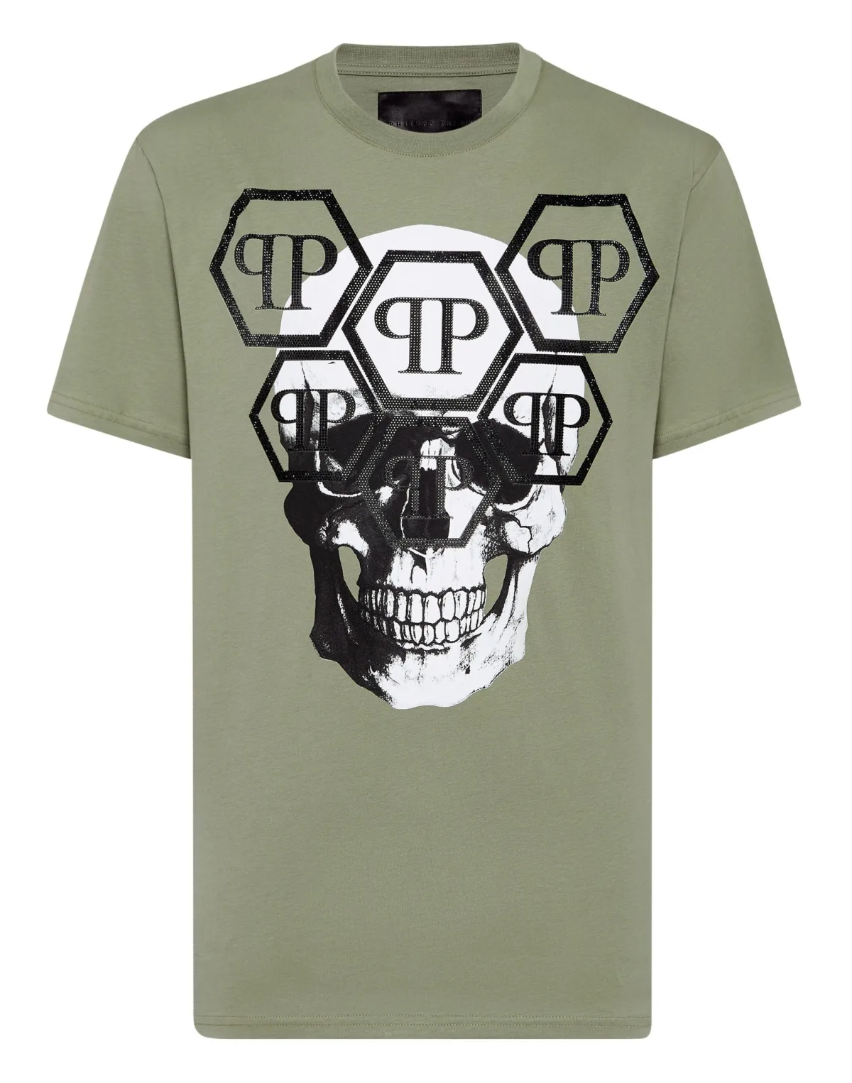 Verfraaid Verhoog je casual garderobe met dit T-shirt met ronde hals. Schedelprint op de voorkant met juwelen PP Hexagon Vervaardigd van eersteklas katoen voor ultiem comfort Ronde hals Perfect om in laagjes te dragen of om op zichzelf een statement te maken Een must-have stuk voor de moderne, stijlvolle individu