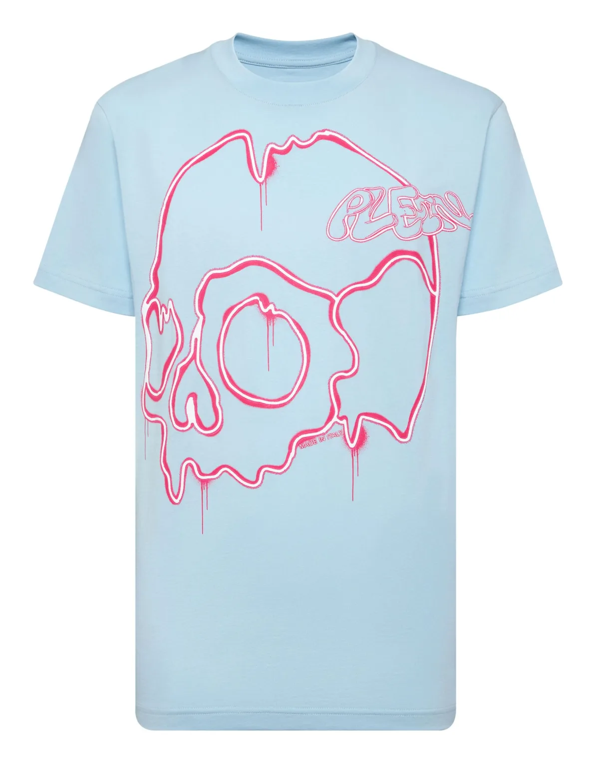Voeg een vleugje uniciteit toe aan je outfits met dit exclusieve katoenen T-shirt. Bekijk de details. Katoenen jersey Dripping Skull print op de voorkant PP Hexagon op een saffiaan lederen patch is genaaid op het juk Ribgebreide hals Twee naaldstiksels
