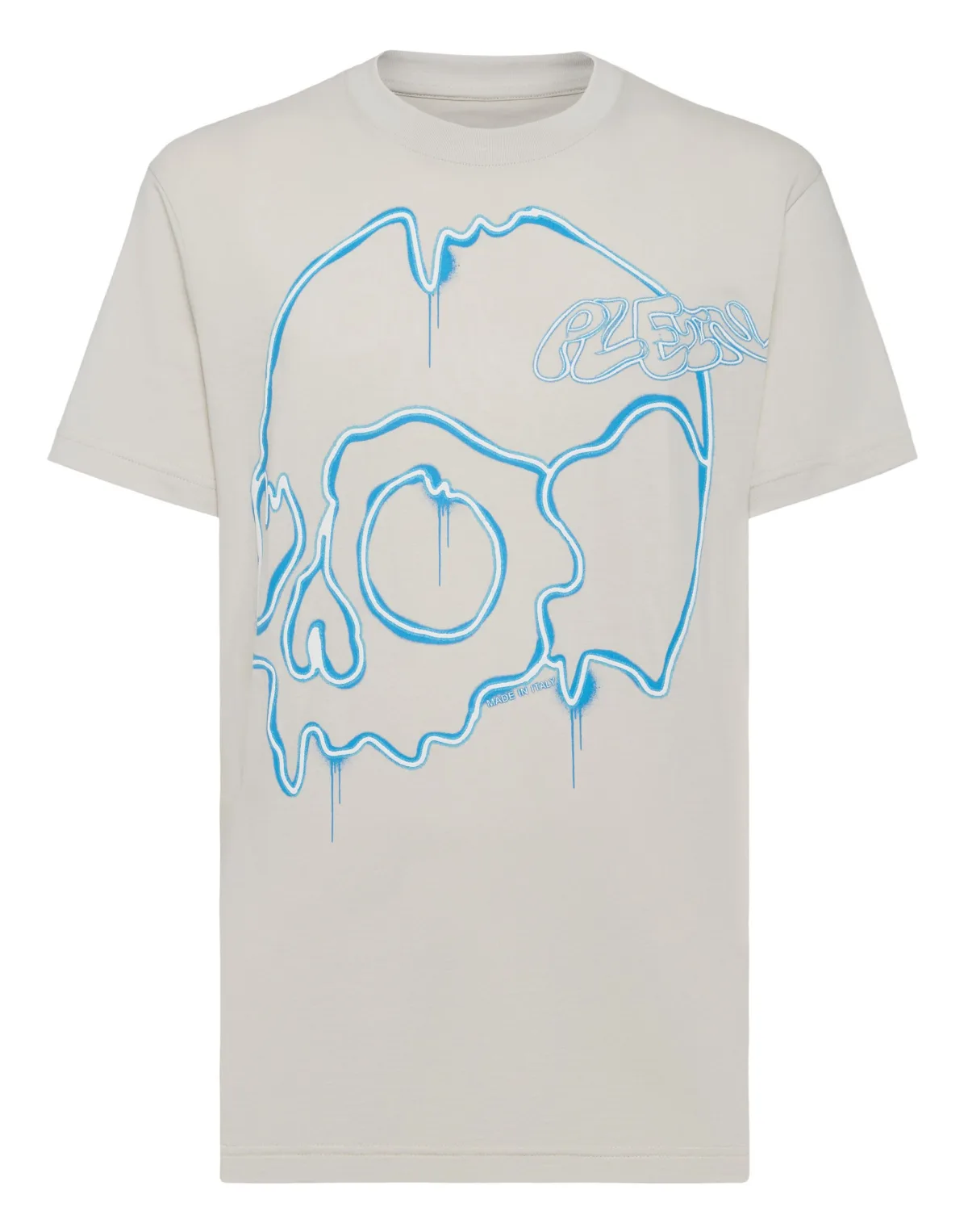 Voeg een vleugje uniciteit toe aan je outfits met dit exclusieve katoenen T-shirt. Bekijk de details. Katoenen jersey Dripping Skull print op de voorkant PP Hexagon op een saffiaan lederen patch is genaaid op het juk Ribgebreide hals Twee naaldstiksels