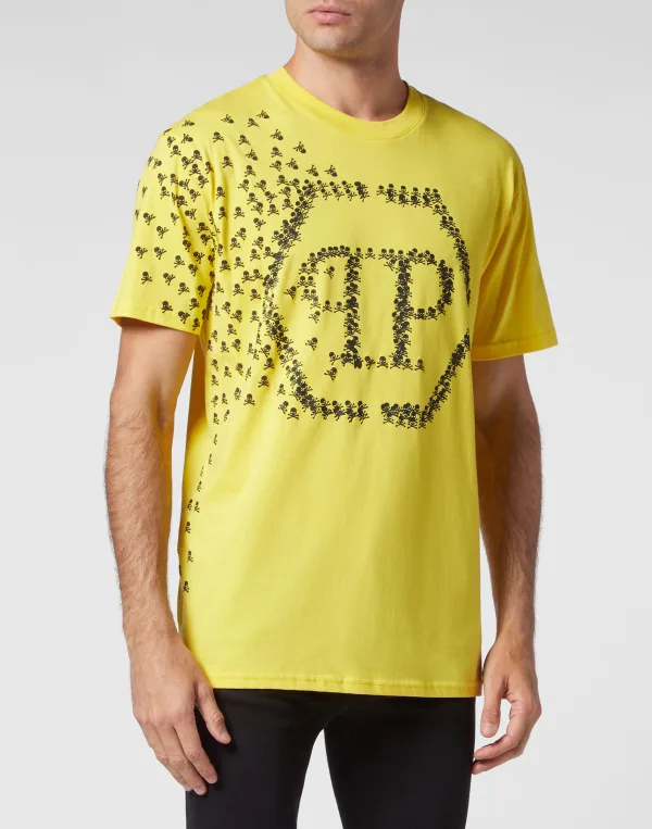 Ontdek de originaliteit van dit T-shirt met korte mouwen in katoenjersey versierd met de iconische elementen van het merk. Katoenen jersey Skull&Bones print op de voorkant en rechtermouw creëren uiteindelijk de iconische Hexagon PP Hexagon op een saffiaan lederen patch is genaaid op het juk Ribgebreide hals Twee naaldstiksels
