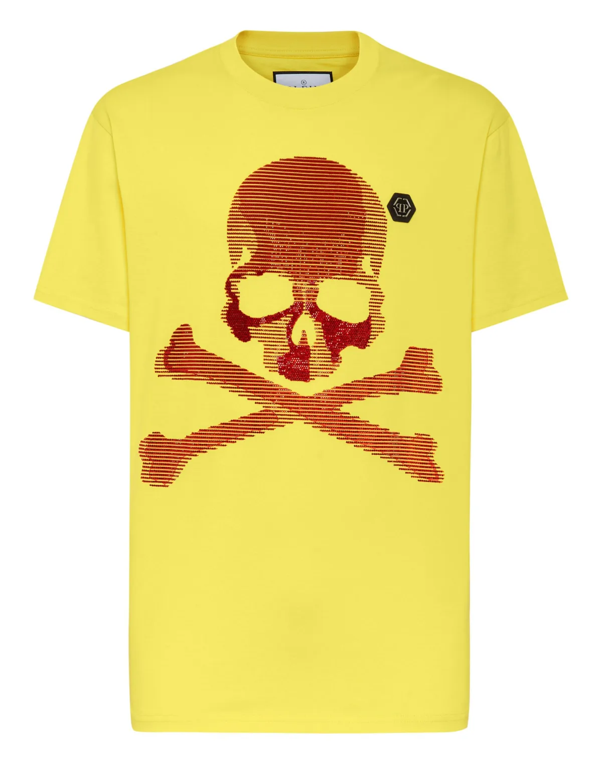 Voeg een vleugje uniciteit toe aan je outfits met dit exclusieve katoenen T-shirt. Bekijk de details. Katoenen jersey Rhinestoned Skull&Bear print op de voorkant PP Hexagon op een saffiaan lederen patch is genaaid op de linkerborst Ribgebreide hals Stiksels met twee naalden