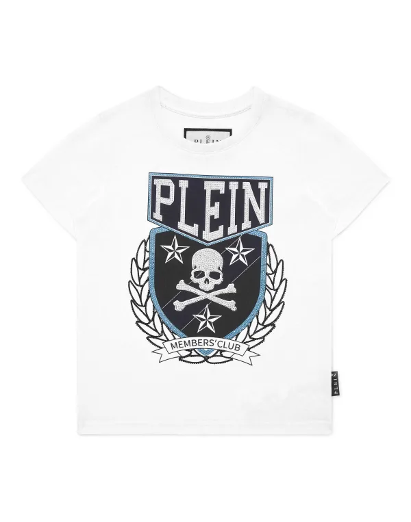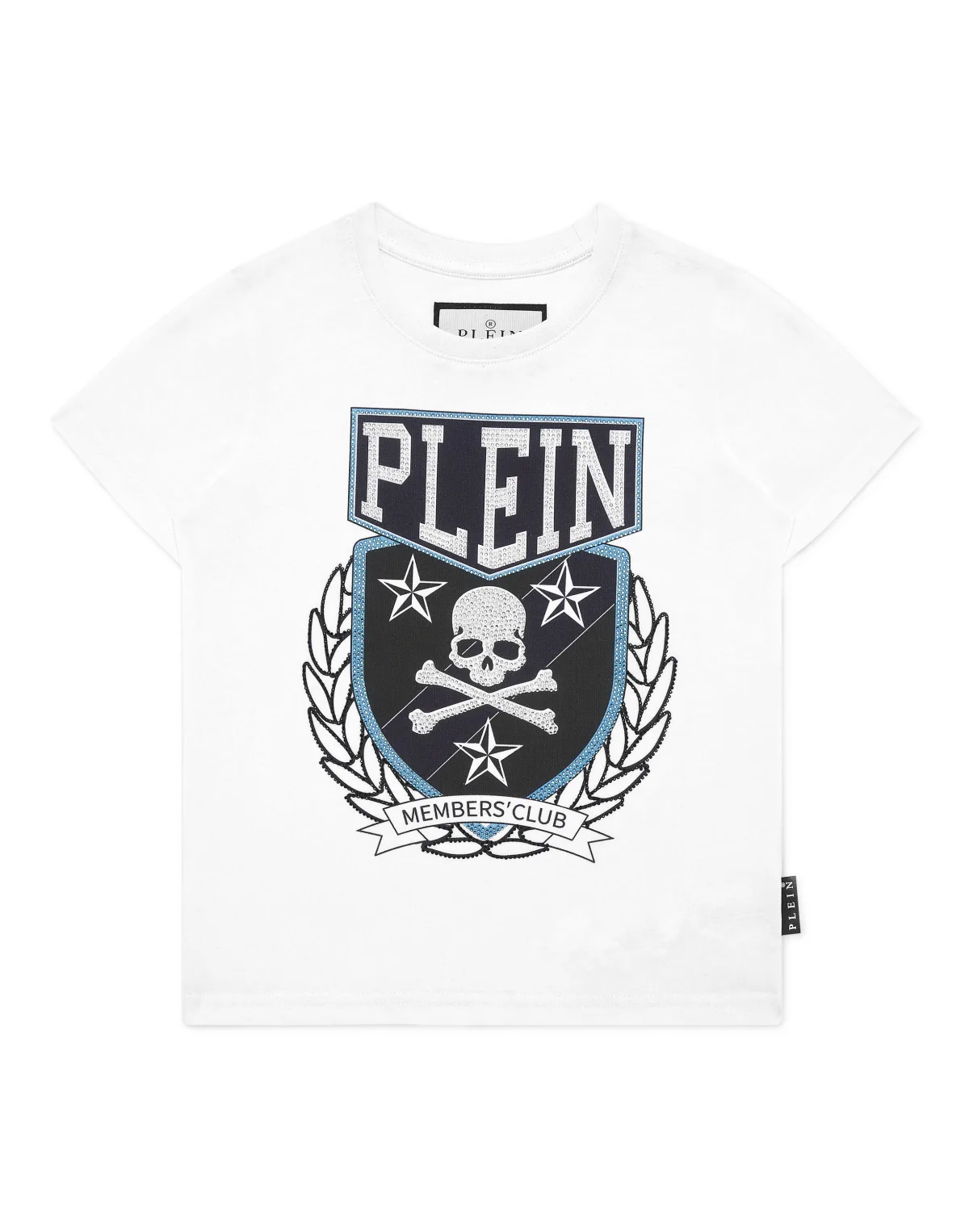 Dit T-shirt met ronde hals brengt gedurfde energie in de kinderkasten en combineert comfort met opvallende details voor een zelfverzekerde alledaagse look. Premium katoenen stof biedt ademende zachtheid. Grote crest-geïnspireerde afbeelding met kristallen accenten voegt opvallende flair toe. Korte mouwen en klassieke snit voor gemakkelijke draagbaarheid. het kenmerkende schedelmotief weerspiegelt de edgy geest van het merk. Perfect statement stuk voor speelse maar stijlvolle dressing.