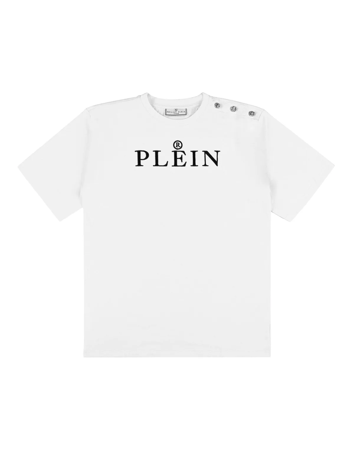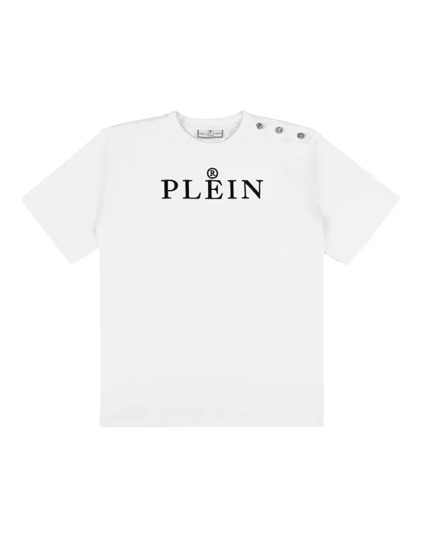 Dit Plein Kids T-shirt met ronde hals biedt alledaags gemak met een verfijnde Plein twist. Het geborduurde logo en de drukknopen op de schouder geven het zowel een kenmerkende stijl als functioneel comfort. Zuiver katoen voor zachtheid en ademend vermogen Geborduurd logodetail voor een vleugje luxe branding Schouderknopen voor gemakkelijk aankleden Afgewerkt met lichte stretch voor een flexibele pasvorm Een veelzijdige essential die comfort combineert met iconische stijl