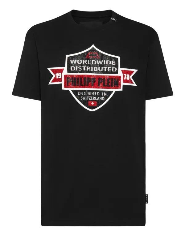 Katoenen T-shirt van jersey met de strass-print van de iconische emblemen van het merk. Een saffiaanleren patch met de PP Hexagon is op het juk genaaid. Gestikt met twee naalden.