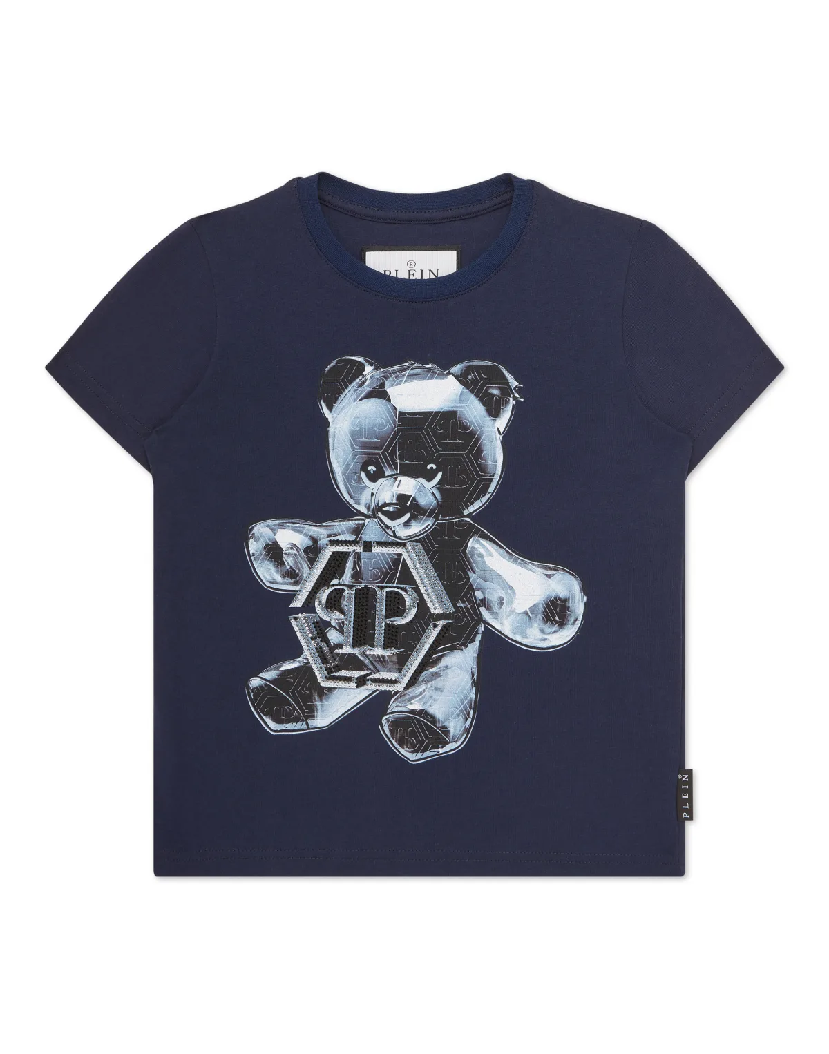 Dit speelse t-shirt met ronde hals maakt van een casual nietje een opvallend stuk, dat de dagelijkse looks van kinderen sprankelt en leuk maakt. Premium katoen zorgt voor zachtheid en langdurig comfort. Statement teddybeer met kristallen accenten voor een gedurfde touch. Ronde hals en korte mouwen voor eenvoudige, veelzijdige styling. subtiele merkdetails weerspiegelen de kenmerkende rand van het maison. Perfect voor het verheffen van casual outfits met een speelse luxe twist.