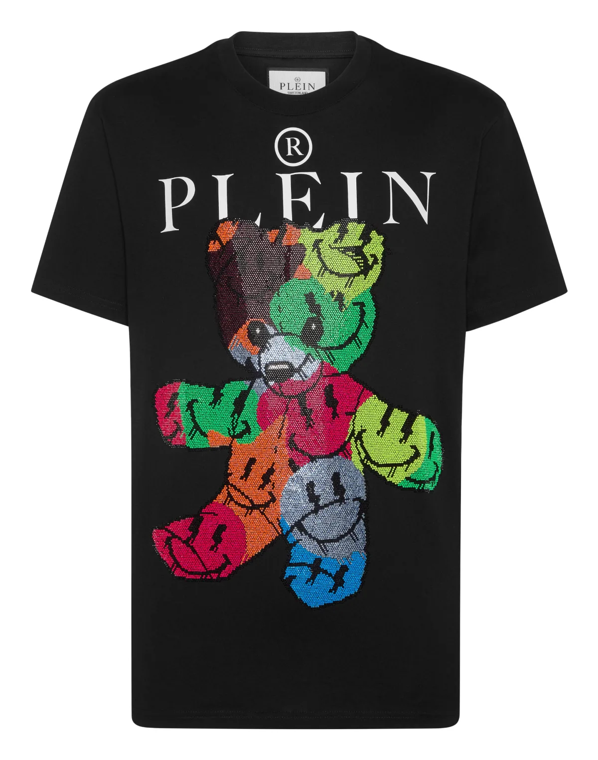 Voeg een vleugje uniciteit toe aan je outfits met dit exclusieve katoenen T-shirt. Bekijk de details. Katoenen jersey Smile Teddybeer print met strass-steentjes op de voorkant PP Hexagon op een saffiaan lederen patch is genaaid op het juk Ribgebreide hals Stiksels met twee naalden