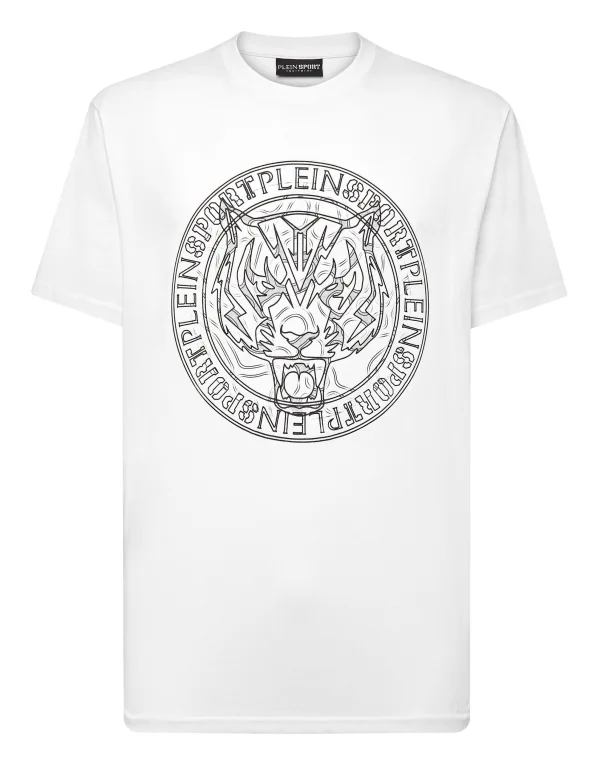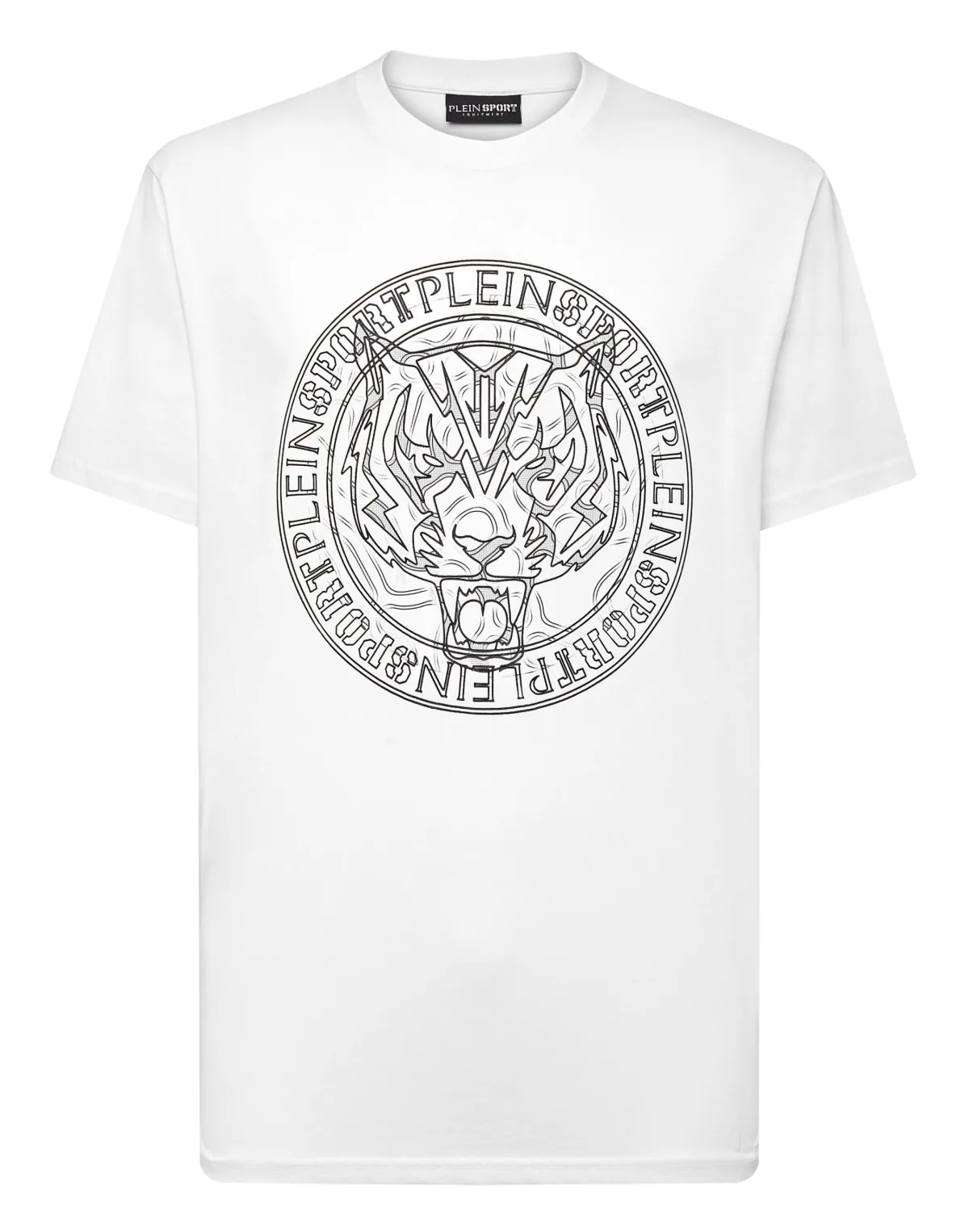 Plein Sport geeft je de kans om ook op te vallen terwijl je hard traint. Bekijk dit nieuwe T-shirt met de iconische Brand-elementen. Maximaal comfort dankzij de natuurlijke soepelheid van katoenjersey Merk- en tijgerprint op de voorkant Rubberen Tiger-patch op het juk Ribgebreide hals Tweedraads gestikte zomen