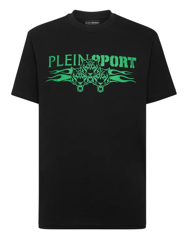 Plein Sport geeft je de kans om ook op te vallen terwijl je hard traint. Bekijk dit nieuwe T-shirt met de iconische Brand-elementen. Maximaal comfort dankzij de natuurlijke soepelheid van katoenjersey Merk- en tijgerprint op de voorkant Rubberen Tiger-patch op het juk Ribgebreide hals Tweedraads gestikte zomen