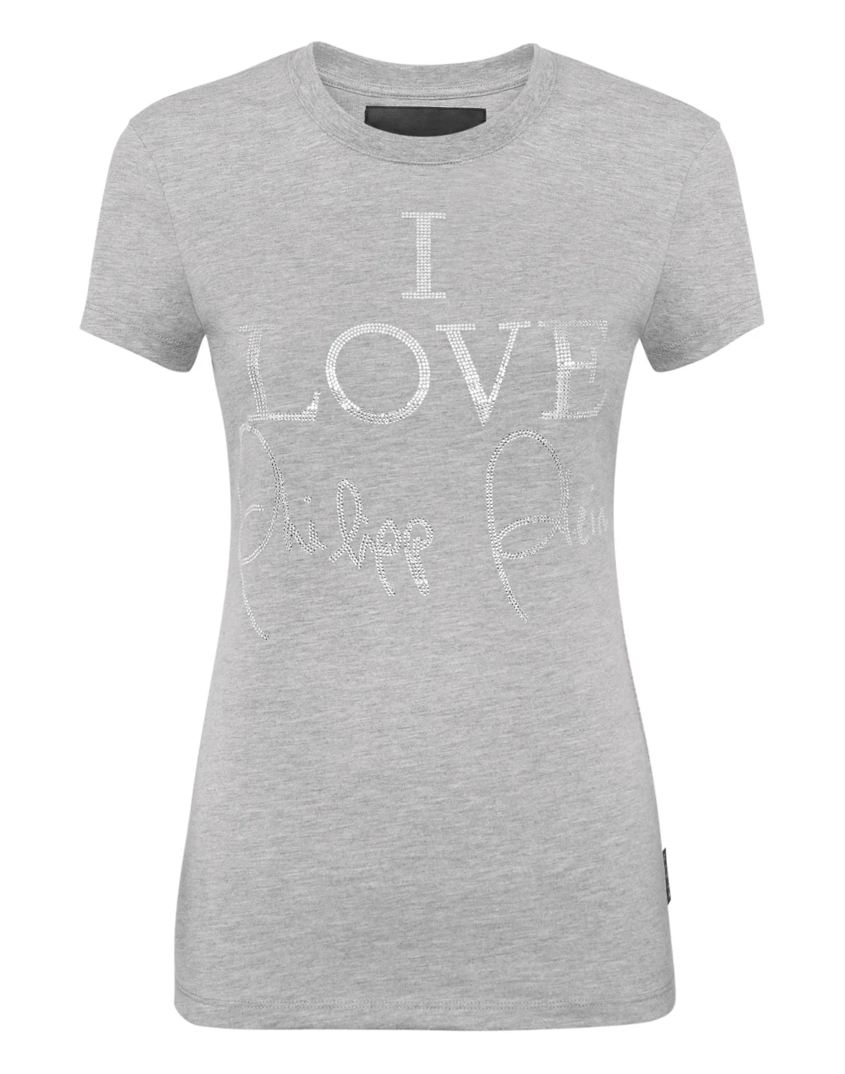 Katoenen T-shirt van jersey. De iconische Plein-handtekening van strassteentjes siert het item. Een saffiaanleren patch met de PP Hexagon op het juk genaaid. Zomen gestikt met twee naalden.