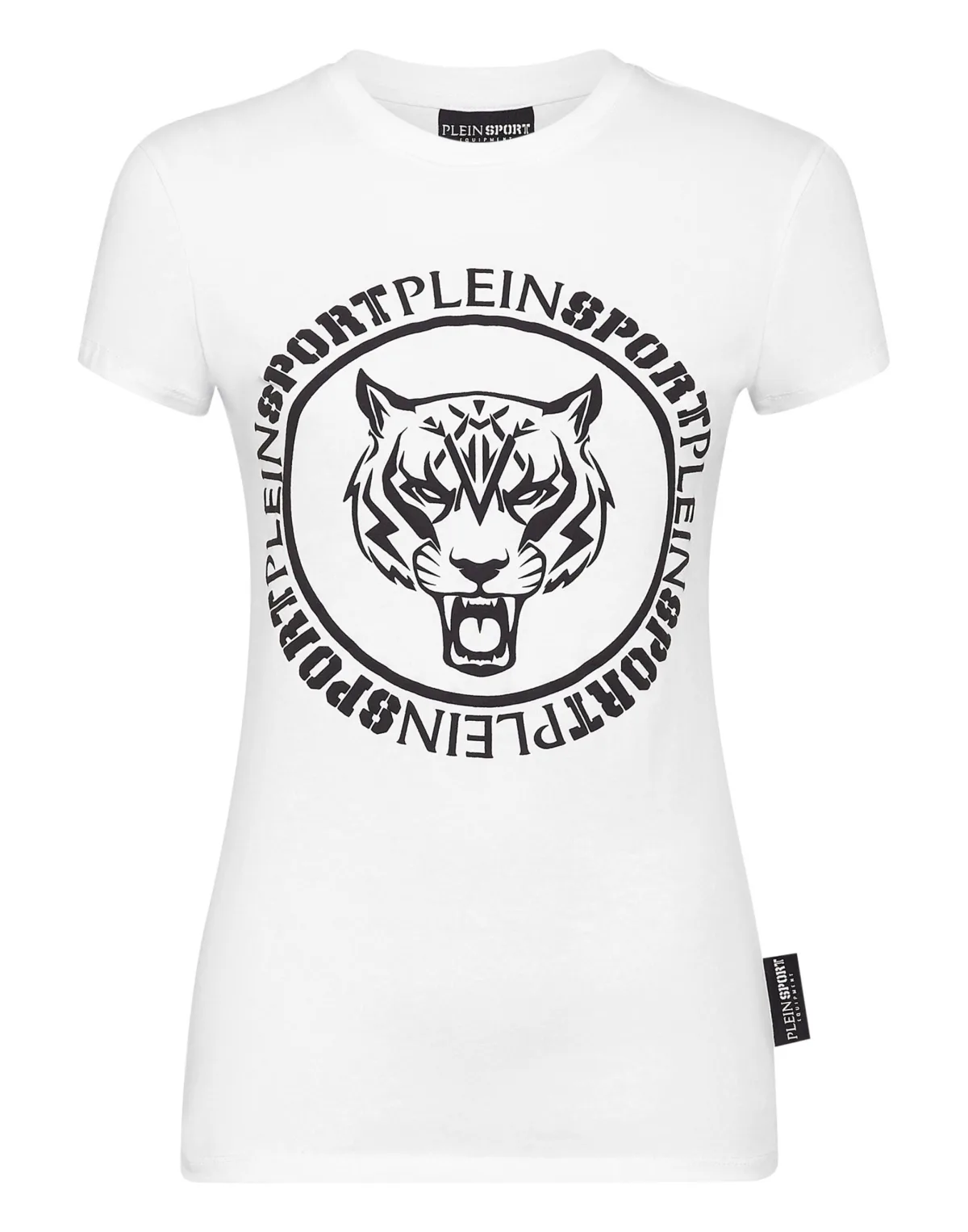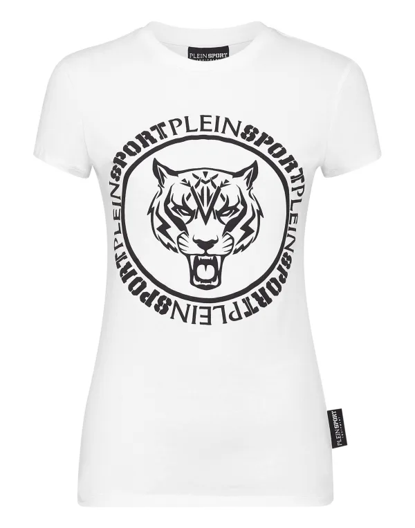 Plein Sport gives you the chance to stand out also while training hard. Check out this new T-shirt featuring the iconic Tiger. Maximum comfort thanks to the natural flexibility of cotton jersey The iconic Tiger print on the front Rib knit neckline Two-needle stitching hems