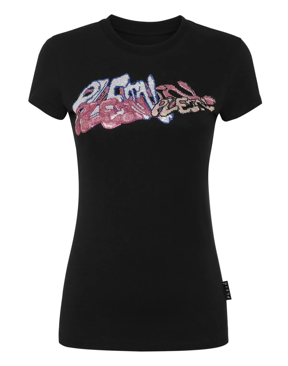 Verfraaid Dit katoenen T-shirt is uniek. Kijk naar de details. Katoenen jersey Bombing Graffiti prints met strass-steentjes op de voorkant PP Hexagon op een saffiaan lederen patch is genaaid op het juk Ribgebreide hals Twee naaldstiksels