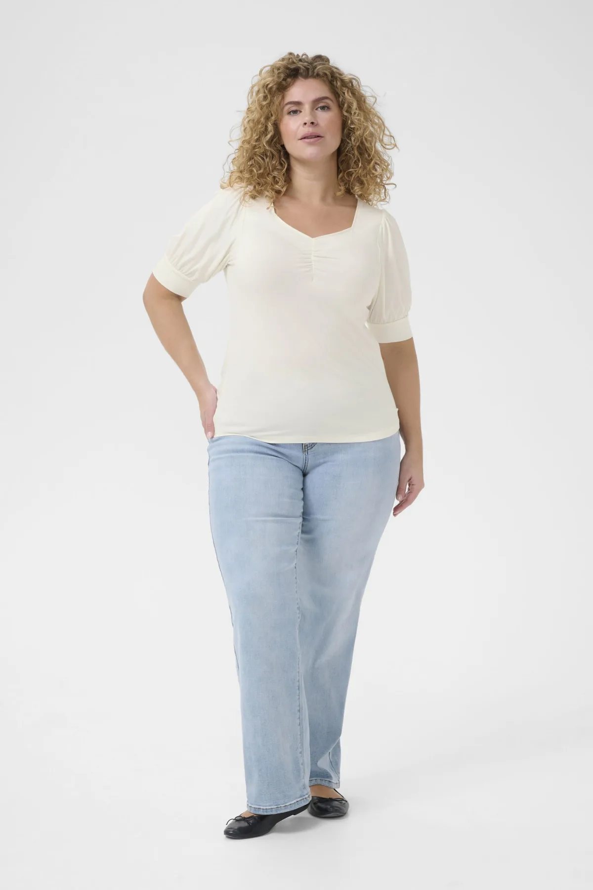 Blouse type: Blouseshirt; Design: Gevoerde zoom/rand; Materiaal: Viscose; Motief: Effen; Kraag: Zonder kraag; Details: Gedrapeerd; Extra's: Op staal naden; Pasvorm: Slanke pasvorm; Armlengte: Kwartmouw; Lengte: Normale lengte
