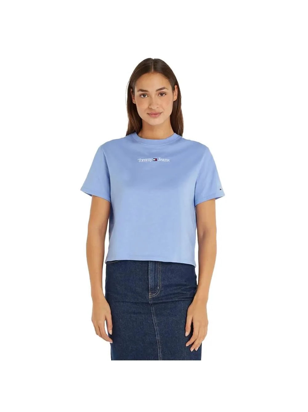 Tommy Jeans TJW Cls Serif dames T-shirt van blauw katoen. Authentiek Tommy Jeans merkkledingstuk - streetwear/sportkleding design van Tommy Jeans - Tommy Jeans voor dames, modieus en perfect voor dagelijks gebruik - dit blauwe Tommy Jeans T-shirt past perfect bij de rest van je garderobe - comfortabel katoen - klassiek - TJW Cls Serif -