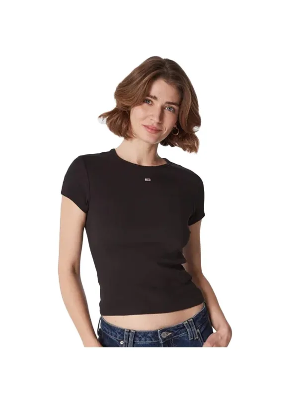 Tommy Jeans presenteert moderne versies van klassieke Tommy Hilfiger-ontwerpen en combineert inspiratie uit de jaren 90 met een relaxte stijl om de ultieme casual look te creëren. Met levendige kleuren en subtiele nuances biedt Tommy Jeans collecties die bij elke garderobe passen, zoals dit relaxte Baby Essential T-shirt voor dames, verkrijgbaar in zwart met een slim fit. Details: Zwart, ronde hals, relaxte textuur, slim fit en een discreet logo in het midden van de borst.