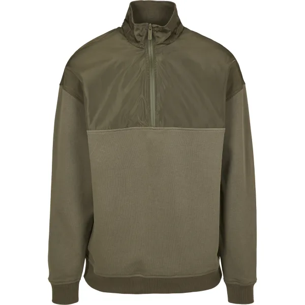 Dynamisch, zelfverzekerd, trendy: deze Military Troyer is klaar om te gaan en te stijgen voor elk type outdoor activiteit. Terwijl de onderste helft is gemaakt van een klassiek hoodie-materiaal, is de bovenkant van glanzend polyester. Voorzien van een hoge kraag en een voering van zacht en plushachtig fleece, beschermt de half-zip trui tegen de harde wind en temperaturen. Zodra de zon opkomt, kun je de trui met de rits tot onder de borst openen.