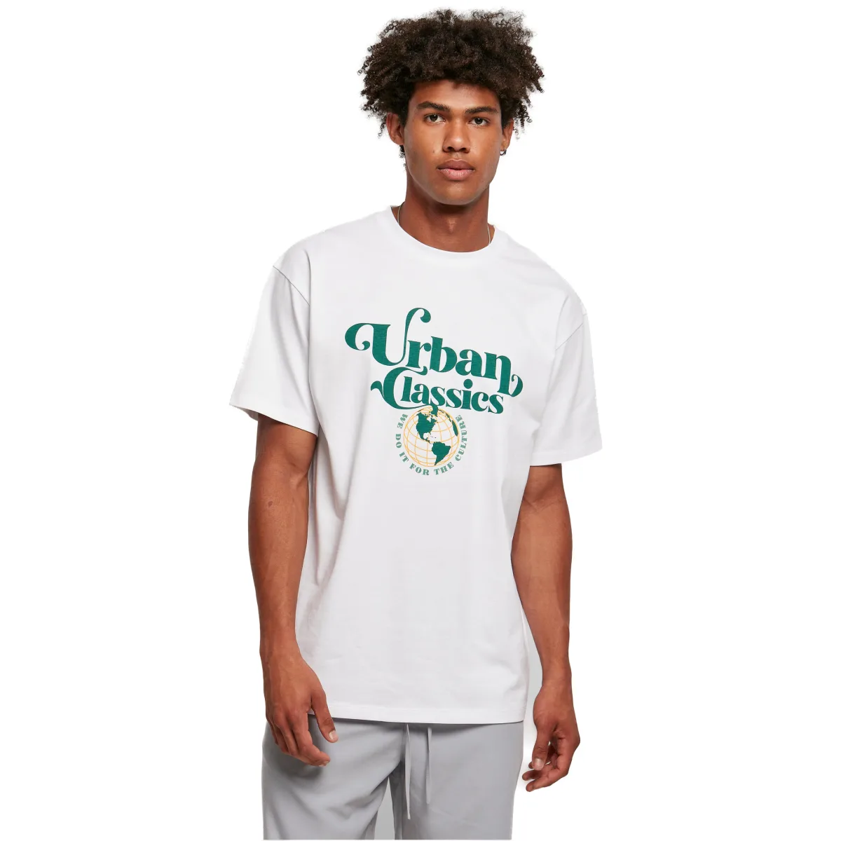 Dit heren t-shirt is zowel trendy als straalt positieve vibraties uit. Het is voorzien van een Urban Classics logo-opdruk op de borst met daaronder een wereldbolmotief. De pasvorm is trendy en oversized, met afhangende schouders en een ronde hals. Het hemd is gemaakt van biologisch, huidvriendelijk single jersey katoen en is voorzien van de juiste labels.Buitenkant stof 1: 100% katoen (biologisch), biokatoenen jersey, 220 g/m².