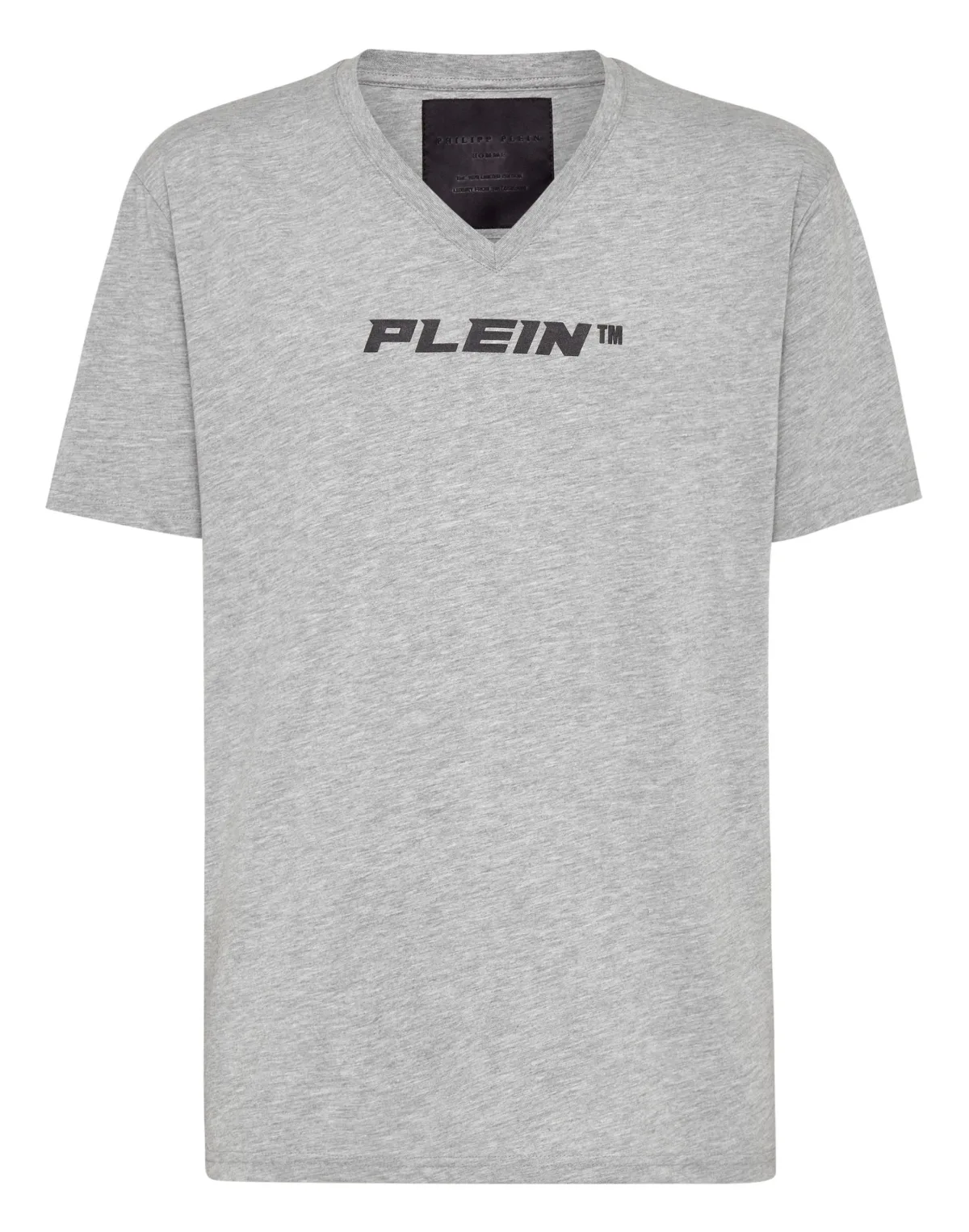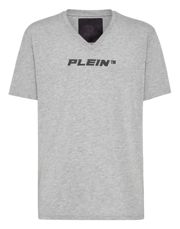 Katoenen V-hals T-shirt met de iconische letterprint. Een saffiaanleren patch met de PP Hexagon op het juk genaaid. Gestikt met twee naalden.