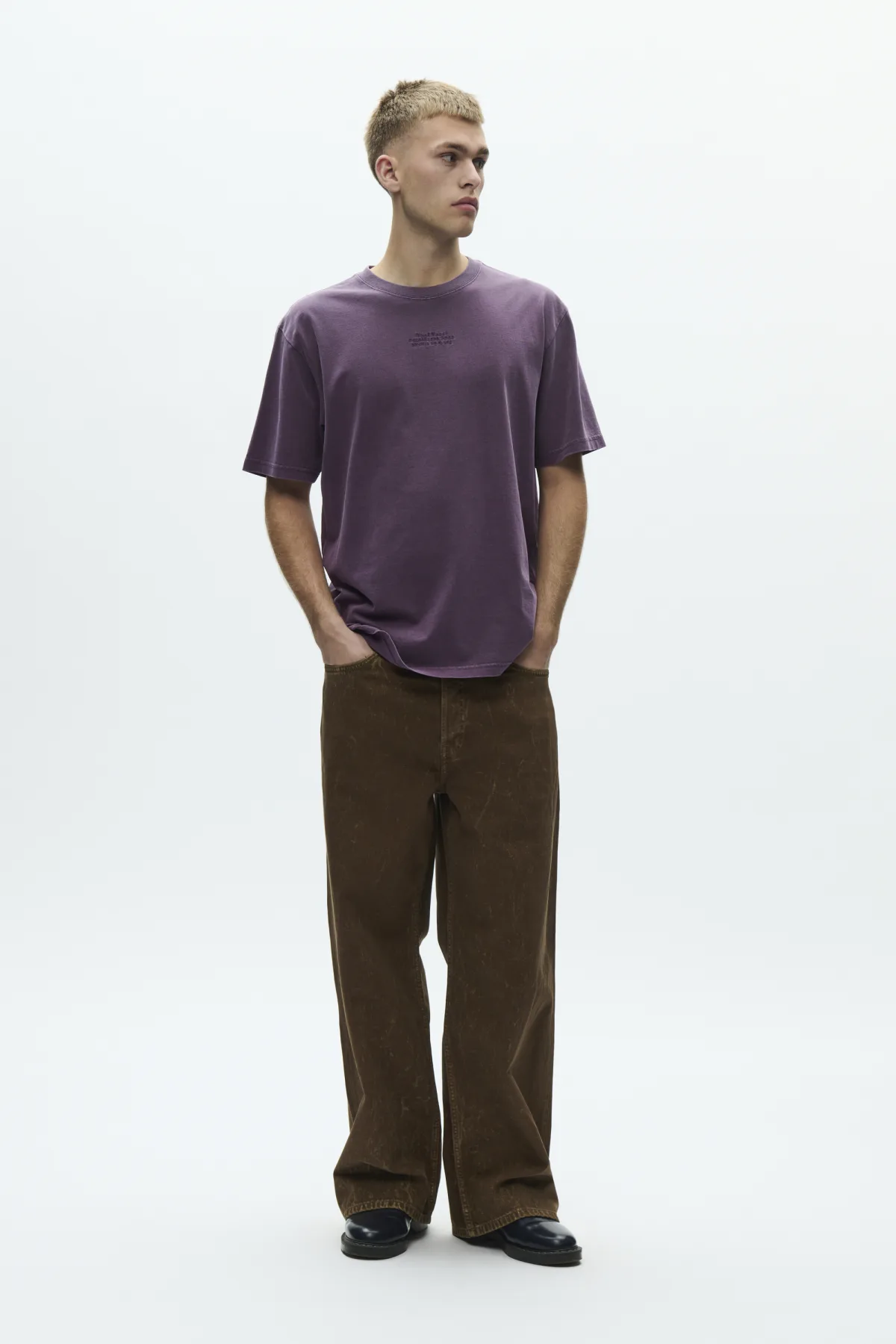 Dit oversized T-shirt heeft een klassieke ronde hals, rechte zoom en relaxte korte mouwen. Een gladde afwerking en subtiel detail op de borst staan centraal.