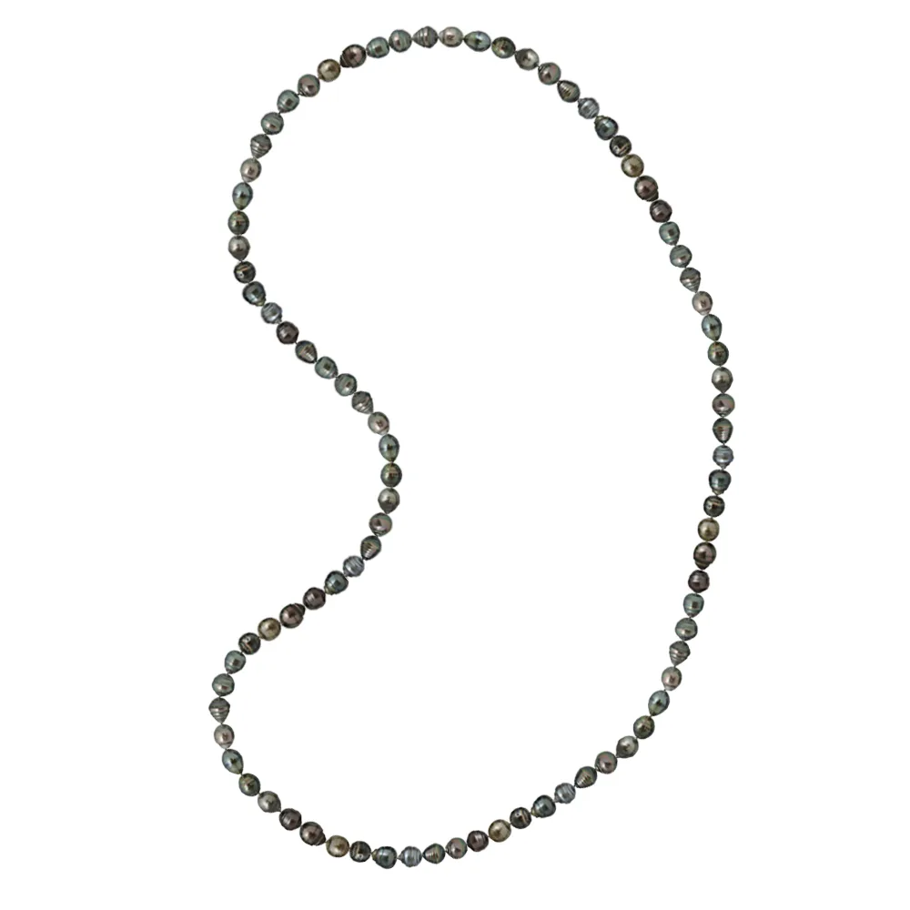 Rank ketting van Tahitian Pearls Ringed 8-9 mm - A + Kwaliteit - Arc-en-Ciel - Lengte 75 cm - Wordt geleverd in een koffer met een certificaat van echtheid en een internationale garantie - Al onze juwelen zijn gemaakt in Frankrijk.