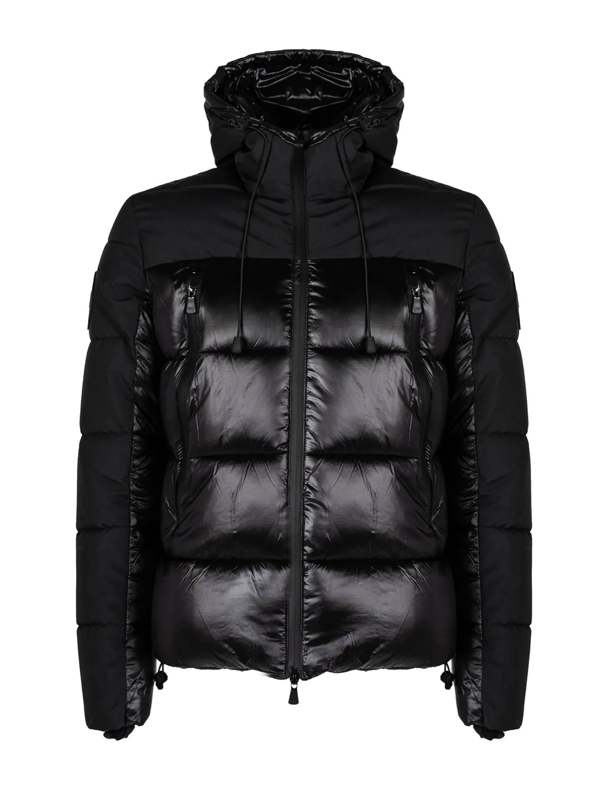 Eenvoudige stijl Gewatteerd Met capuchon Capuchon met verstelbaar trekkoord Met subtiele glans Met tweewegritssluiting Mouwen eindigen met een manchet Twee grote zakken met kleppen aan de voorkant Drie zakken aan de binnenkant, waarvan twee met een sluiting Verstelbaar aan de onderkant met trekkoorden Bedrijfspatch op de linkermouw Gevoerd met synthetische veren Gemaakt van hoogwaardig wind- en waterafstotend materiaal