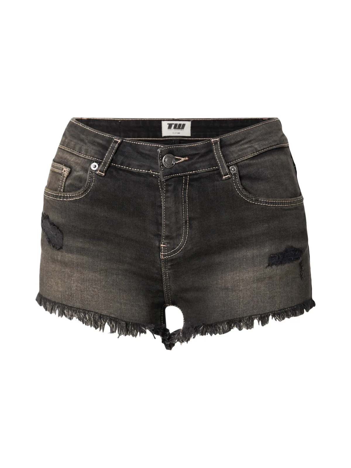 Design: Gefranjerde zoom, Ritssluiting, 5-pocket-style; Type sluiting: Ritssluiting; Materiaal: Denim; Motief: Effen; Extra's: Studs, Contrasterende naden, Label patch/label flag, Vaste grip, Riemlussen; Wassing: Heavy washed; Lengte: Kort/mini; Pasvorm: Slimfit; Taillehoogte: Mid waist