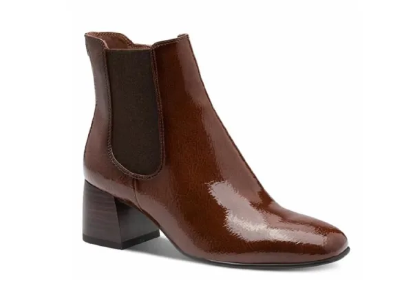 Tamaris op onze webshop. Enkellaarzen van het topmerk Tamaris. Dit model is uitgevoerd in cognac lak. Deze korte laarzen van Tamaris, artikel 1-25327-45-305 in de kleur cognac shop je gemakkelijk en snel op onze webshop.