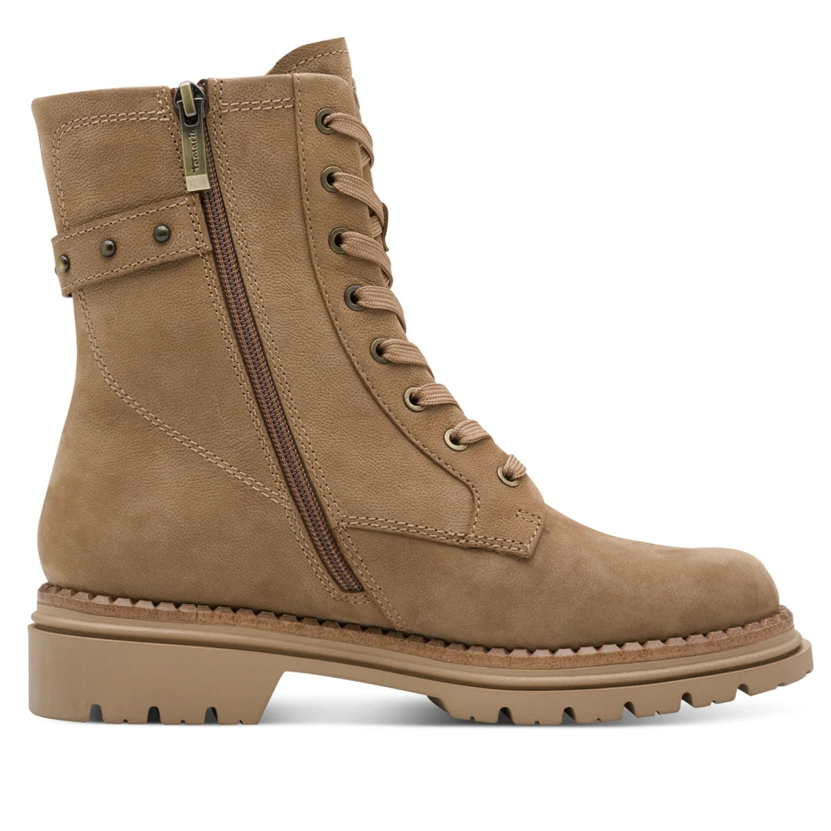 Tamaris Dames Fashion Camel Beige Leren Veterschoenen met Rits Combat Enkellaarsjes