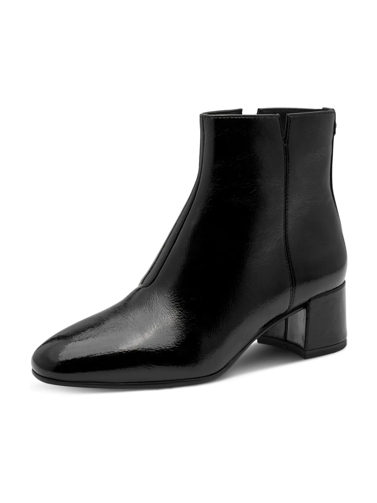 Design: Ritszakken aan de zijkant, Profielzolen; Type sluiting: Ritssluiting; Type hak: Blokhak; Materiaal: Imitatieleder; Motief: Effen; Materiaal: Lak; Schoenneus: Ronde neus; Extra's: Label plaatje, Glanzend; Hakhoogte: Middelhoge hak (3-7 cm)