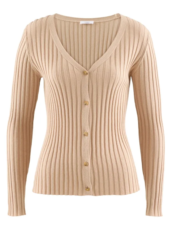 Design: Geribbeld gebreid; Type sluiting: Knoopsluiting; Materiaal: Knitwear; Halstype: V-hals; Motief: Effen; Extra's: Fully fashioned; Pasvorm: Slanke pasvorm; Armlengte: Lange mouw; Lengte: Normale lengte
