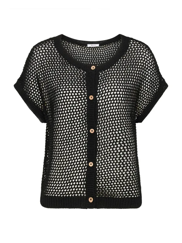 Design: Geribbelde kraag; Type sluiting: Knoopsluiting; Materiaal: Knitwear; Halstype: Ronde hals; Motief: Effen; Details: Mesh; Extra's: Op staal naden; Pasvorm: Normale pasvorm; Armlengte: Kwartmouw; Lengte: Normale lengte