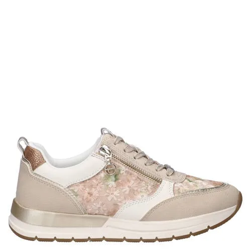 Deze Tamaris dames sneakers geven elke casual outfit een frisse en vrouwelijke update. De beige/multi kleur met speels borduursel op de zijkanten en de neus zorgt voor een subtiel kleurrijk accent, zonder te druk te worden. Door het lage model ogen de sneakers licht en sportief, terwijl het imitatieleer een nette uitstraling geeft die makkelijk combineert met jeans, een chino of een luchtige jurk.Comfort en details in één sneaker Bovenkant van imitatieleer met leuk borduursel aan de zijkanten en op de neus Gevoerd met zacht textiel met lichte wattering voor extra comfort rondom de voet Memoryfoam voetbed dat zich naar je voet vormt en fijne demping biedt bij elke stap Uitneembare binnenzool, ideaal als je eigen inlegzolen draagt Rits- en vetersluiting, zodat je de pasvorm goed afstelt en daarna makkelijk in- en uitstapt Stevige rubberen loopzool met platte zool voor een stabiel en prettig loopgevoel Normale leest, geschikt voor de meeste voetbreedtesVoor dagelijks gebruik en lichte looksDeze sneakers passen goed bij je dagelijkse garderobe. De beige basiskleur laat zich makkelijk combineren met lichte denim, witte broeken of een zachte pasteltoon. Door de combinatie van rits en veters trek je ze snel aan als je de deur uit gaat voor werk, een wandeling of een dagje shoppen.Tamaris als vertrouwd schoenmerkTamaris staat bekend om schoenen die mode en comfort samenbrengen. Bij elke collectie is er aandacht voor pasvorm, draaggemak en nette afwerking. Zo weet je dat je kiest voor een merk dat je voeten de hele dag door goed ondersteunt, zonder in te leveren op een eigentijdse stijl.Een modische sneaker waarmee je comfortabel de dag doorkomt en toch een verzorgd geheel neerzet.