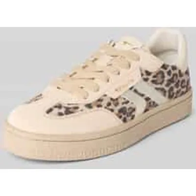 dames low top sneakers van Tamaris;look: all-over motief;Punt van de schoen: afgerond;Hakvorm: plat;Patroon: dierenprint;Applicatie: labelpatch;Details: contraststrepen;sluiting: vetersluiting;Zool: geprofileerd;materiaalverwerking: velours;Materiaal: echt leer