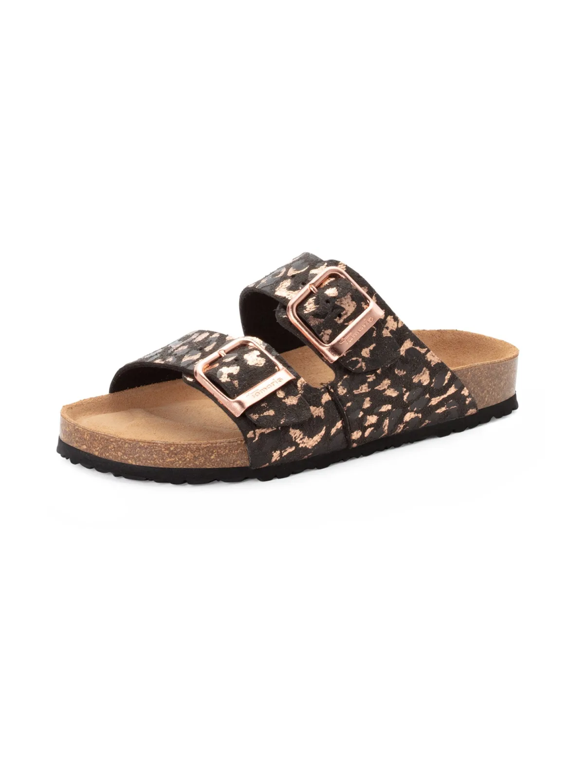 Design: Anatomisch gevormd voetbed, Zool van kurk; Type sluiting: Slip; Materiaal: Imitatieleder; Motief: Dierenprint; Materiaal: Imitatieleer; Schoenneus: Open toe; Extra's: All-over patroon, Flexibele zool; Hakhoogte: Platte hak (0-3 cm)