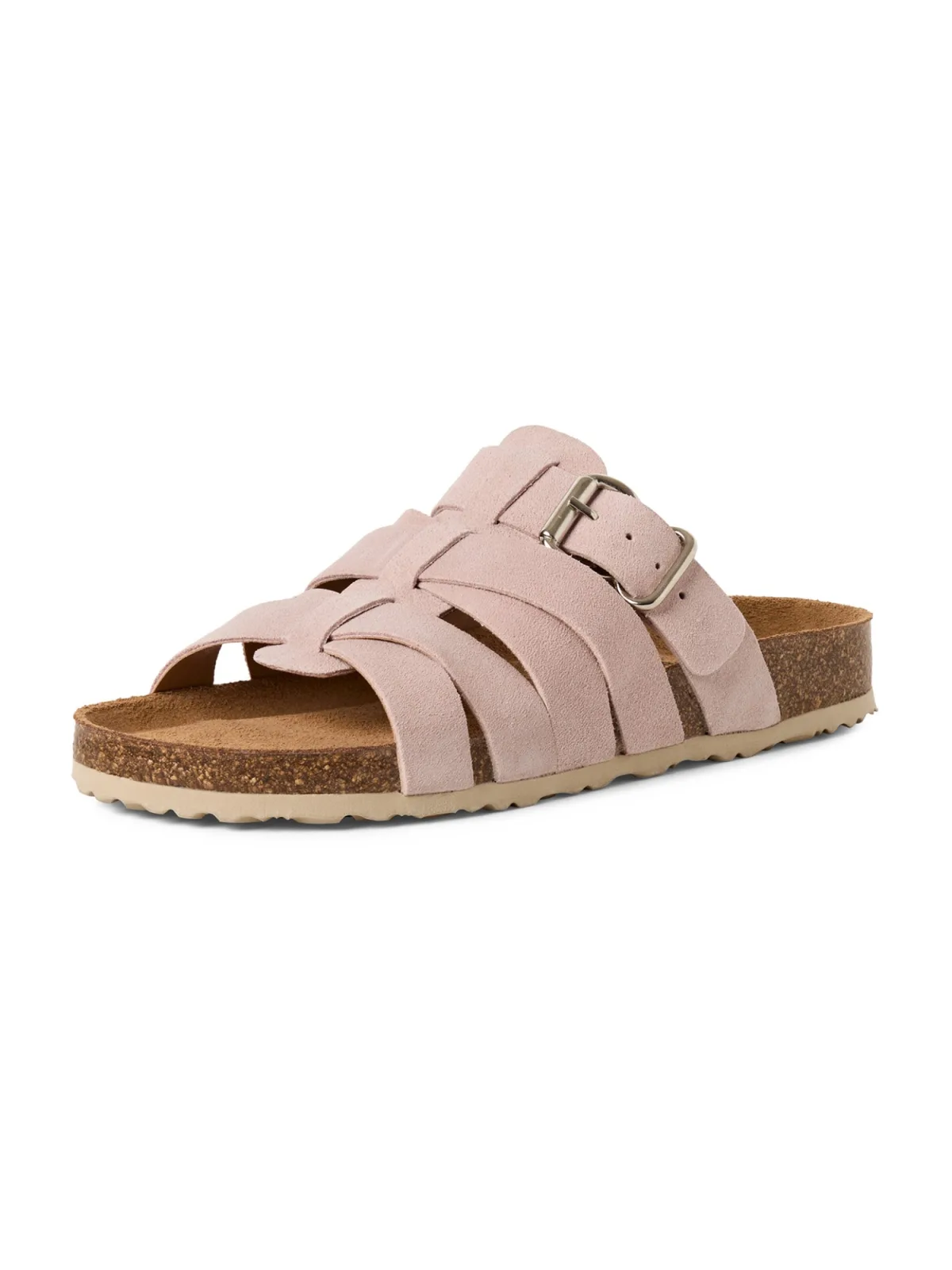 Design: Anatomisch gevormd voetbed, Profielzolen, Zool van kurk; Type sluiting: Slip; Materiaal: Leer; Motief: Effen; Schoenneus: Open toe; Extra's: Buigzame grip, Flexibele zool; Hakhoogte: Platte hak (0-3 cm)